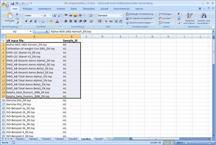 The filenames of UR projects to be processed are collected in column A of Table6 and the associated Sample_IDs in column B, respectively. In this example all UR example project files belonging to the program are listed there.