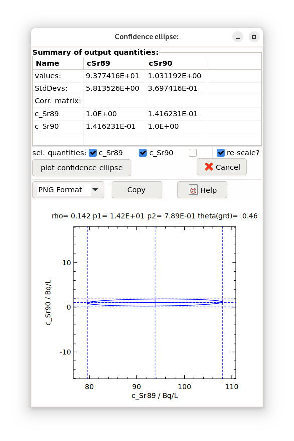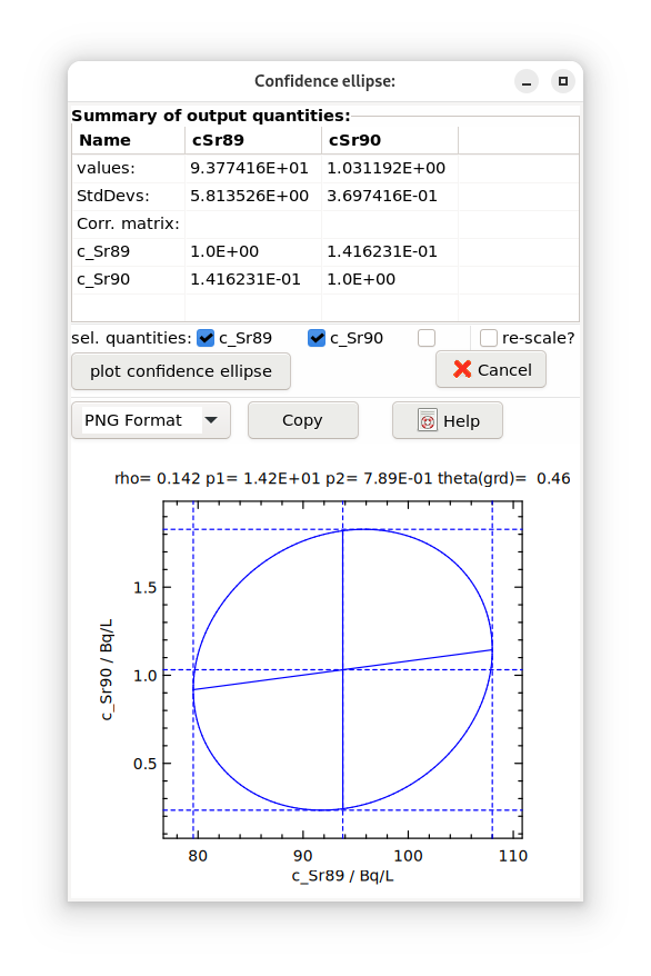 The construction of a confidence ellipse of a pair of output quantities is outlined following the GUM Supplement 2 as follows.